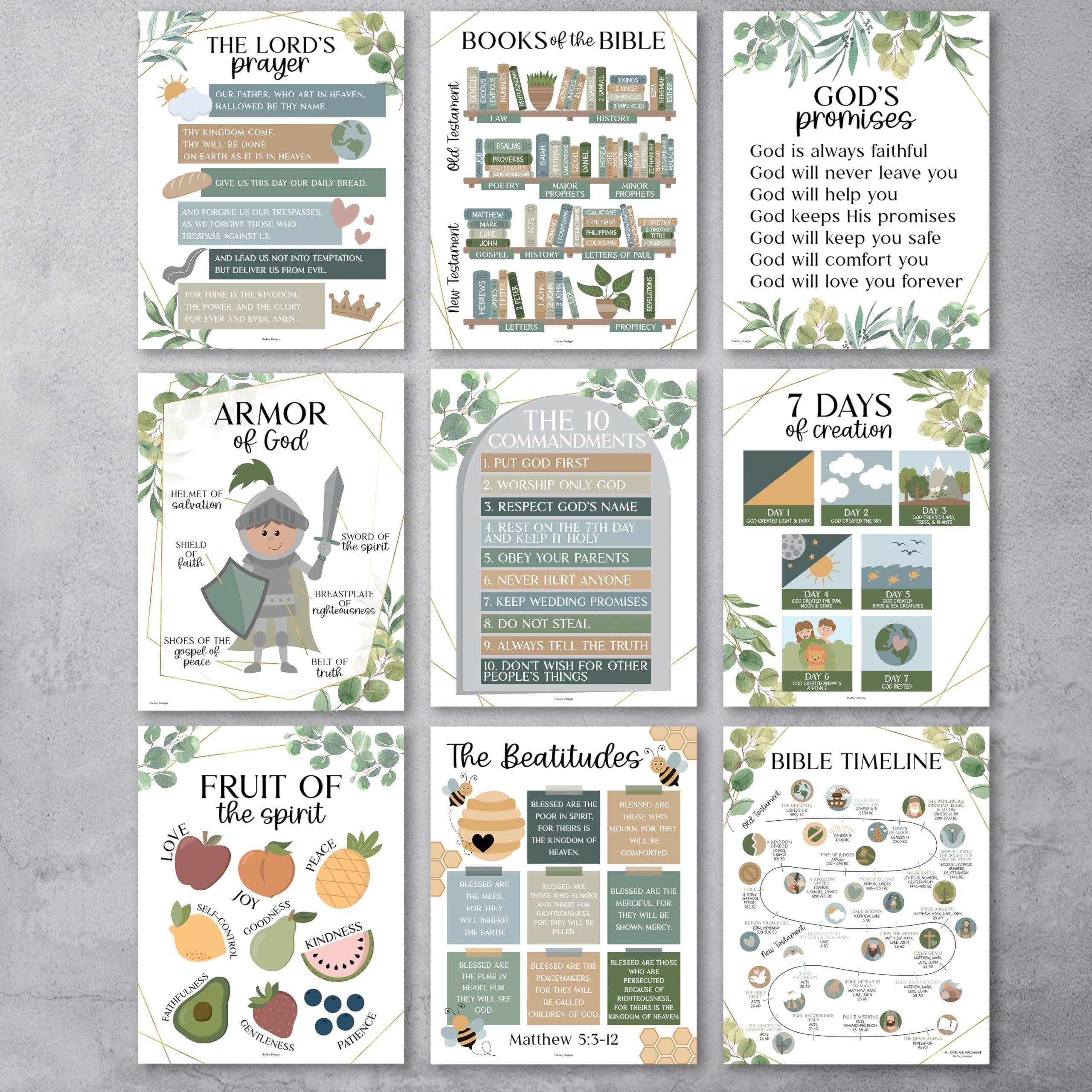 Enhance your learning environment with our Bible Posters Set of 9, designed to inspire and educate in any Sunday School or classroom setting. These vibrant posters are perfect for back-to-school essentials, adding a touch of spirituality and a splash of color to your space.